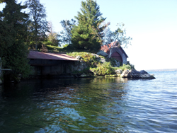 Parc national des Mille-Iles, Mallorytown Landing. Quelques kilmètres en amont de Brockville, une intéressant mise-à-l'eau pour aller visiter le chateau Singer. Et peut être un endroit sympatique pour camper sur une pointe d'île en amont (il y a un camping au parc). A vérifier... J'y étais fin septembre, un week-end de plongé et de kayak, pas trop de bateaux. Touefois, pour y avoir été à quelques reprises dans les chauds mois d'été, je peux confirmer que le plan d'eau est très achalandé. Aussi, ne pas oublier que de l'autre côté du fleuve se trouve les USA et je doute qu'il soit apprécié de débarquer. Au pire, je traîne mon passeport. Il est possible de visiter le chateau Singer (île USA).